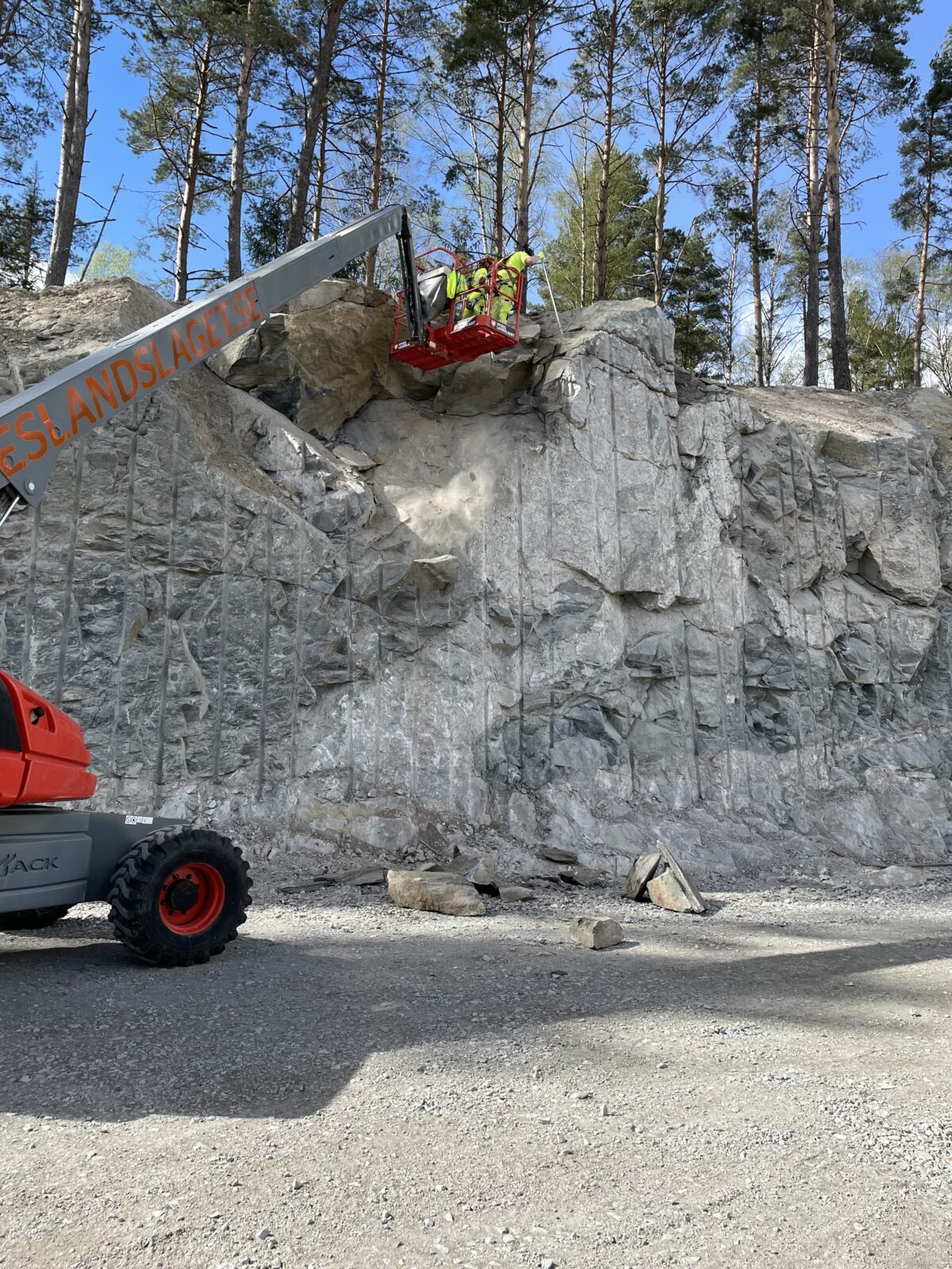 Bergrensning och skrotningsarbeten utförs direkt efter sprängning eller vid underhåll av berg där ras kan förekomma. Vi tar bort de löst sittande block som ej går att förankra.